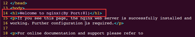 保存配置文件,将 nginx 目录下的 html 文件夹复制一份保存为 html_81,并对其首页进行修改,以便测试时候能够区分: