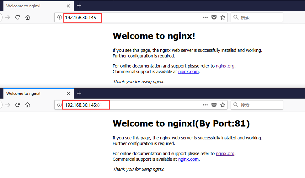 如果使用域名进行区分,都只用访问 192.168.30.145,nginx 内部判断用户输入的域名是 www.jitwxs.cn 还是 www.baidu.com ,无需用户关心,体验好。