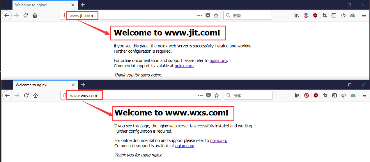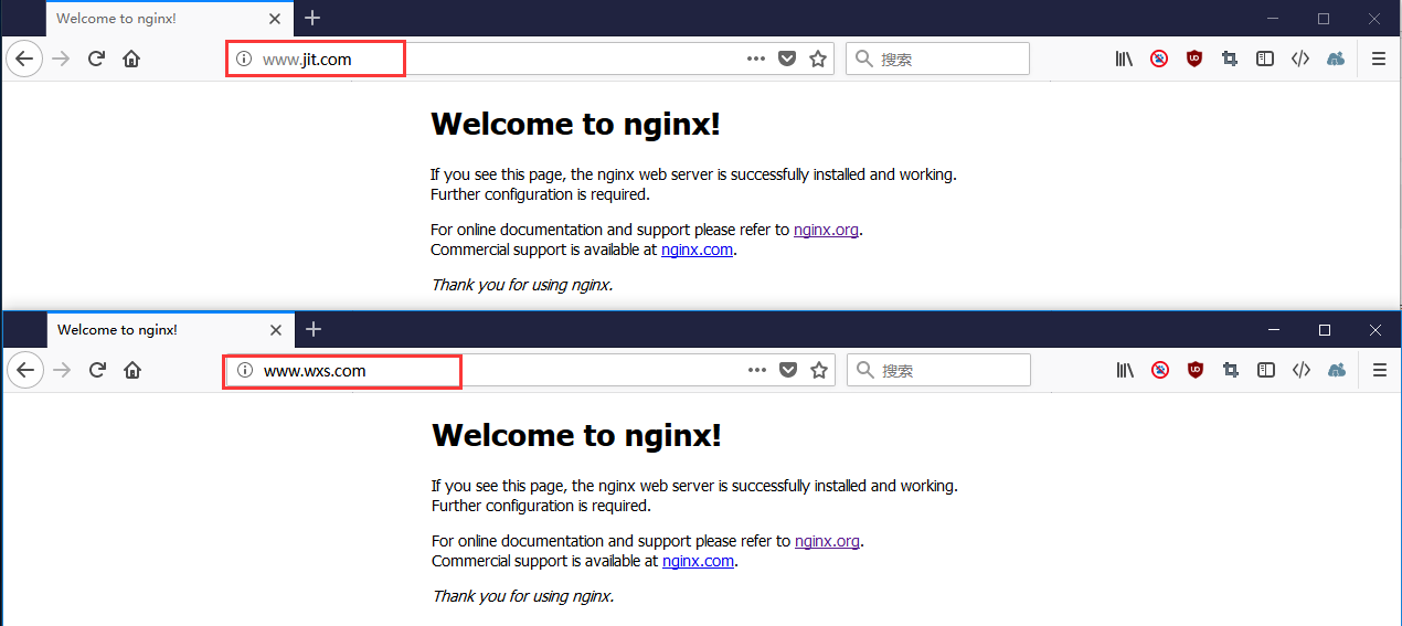 如果使用端口号区分,若想访问 www.jitwxs.cn 使用192.168.30.145:80,访问 www.baidu.com 使用192.168.30.145:81。这是不友好的,因为 http 默认端口为 80,用户如果忘输了网站的端口,不就进了别人的网站吗,用户体验极差。