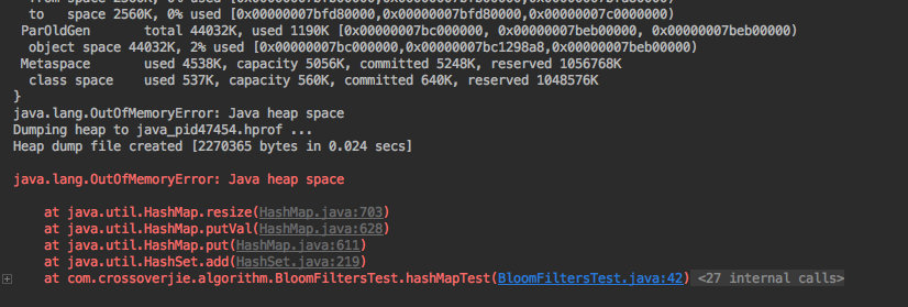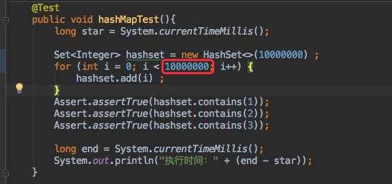 为此我写了一个单测,利用 HashSet 来存数据(底层也是 HashMap );同时为了后面的对比将堆内存写死: