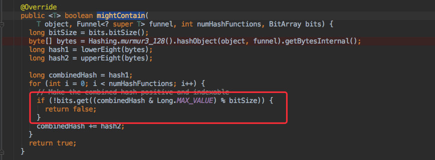 1 | bitsChanged |= bits.set((combinedHash & Long.MAX_VALUE) % bitSize); |