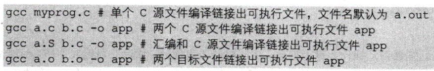 | -c -S -E | 如果使用其中任何一个选项,那么都不运行连接程序,而且目标文件名不应该用做参数 |