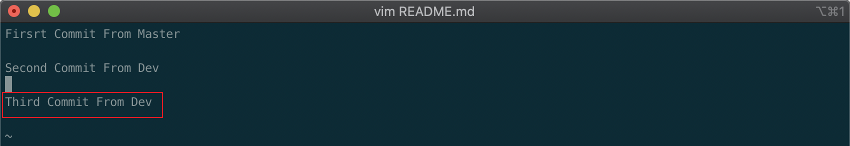 然后创建一个新分支 dev,在提交内容后面追加了以下内容: