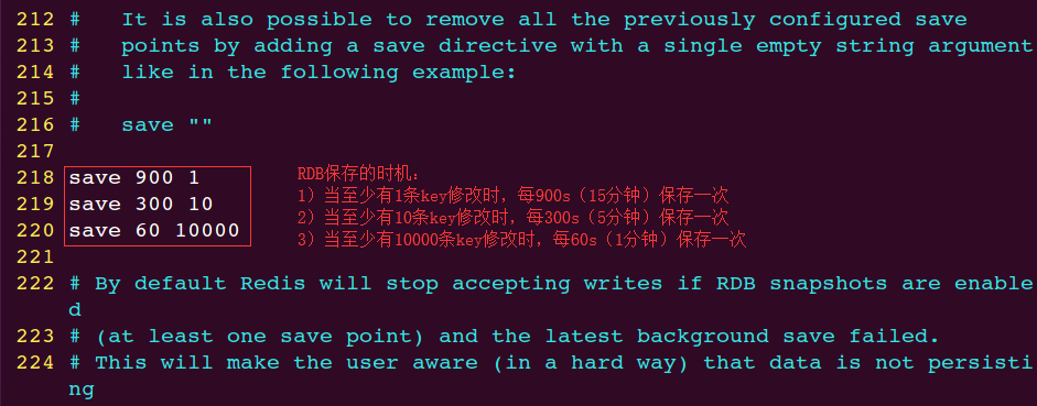 RDB (默认) 在指定的时间间隔内将内存中的数据快照写入磁盘。