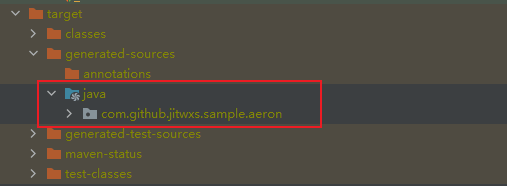 然后执行 maven clean install 命令后自动生成代码会放置在 target/generated-sources/java 目录下。