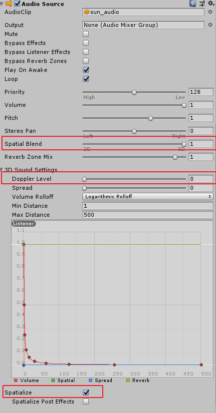 为 Cube 添加一个 Audio Souce 组件,配置如下: