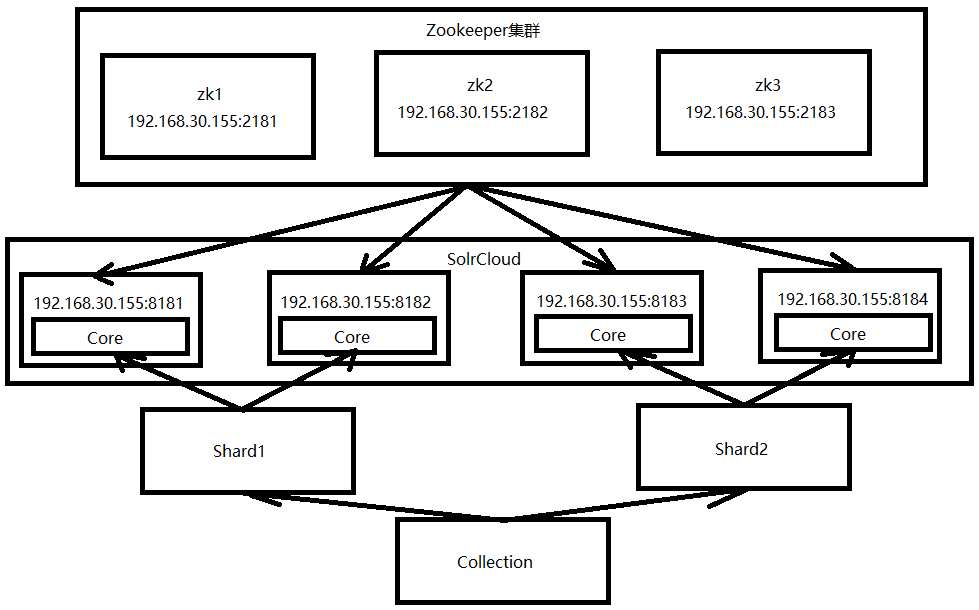 一个 Shard 需要由一个 Core 或多个 Core 组成。由于 Collection 由多个Shard组成所以 Collection 一般由多个 Core 组成。