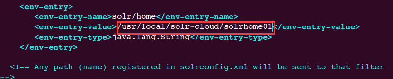 1 | root@ubuntu:/usr/local/solr-cloud# vim tomcat01/webapps/solr/WEB-INF/web.xml |