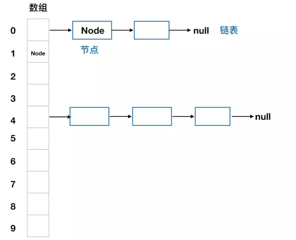 Hashtable 使用链地址法进行元素存储,通过一个实际的例子来演示一下插入元素的过程: