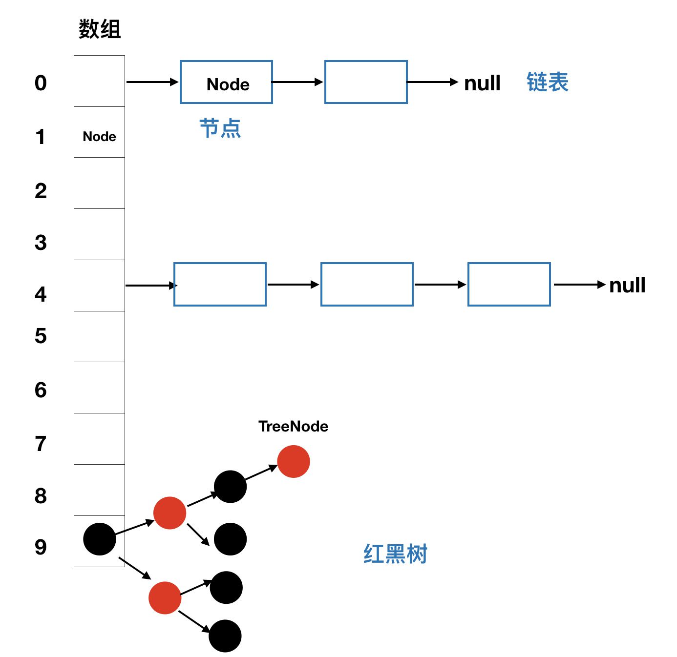 HashTable:线程安全,通过在对应的方法上添加了 synchronized 关键字进行修饰。HashMap:线程不同步。根据key的hashcode进行存储,内部使用静态内部类Node的数组进行存储,默认初始大小为 16,每次扩大一倍。当发生 Hash 冲突时,采用拉链法(链表)。JDK 1.8中:当单个桶中元素个数大于等于8时,链表实现改为红黑树实现;当元素个数小于6时,变回链表实现,由此来防止hashCode攻击。- Java HashMap 采用的是冲突链表方式。