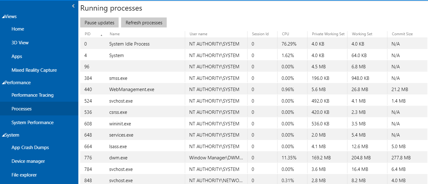 管理HoloLens上的Windows实时事件追踪(ETW)。