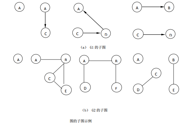 V2V_2V1V_1的子集,E2E_2E1E_1的子集,称图G2G_2为图G1G_1子图。下图给出了7.1.2中图的子图: