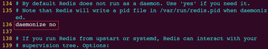 编辑 redis.conf,将 daemonize 的值修改为yes,如图所示:
