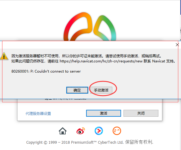 打开 Navicat Premium 15,弹出注册窗口(如果未弹出,点击菜单栏的帮助,选择注册),输入之前获得的注册码,点击激活: