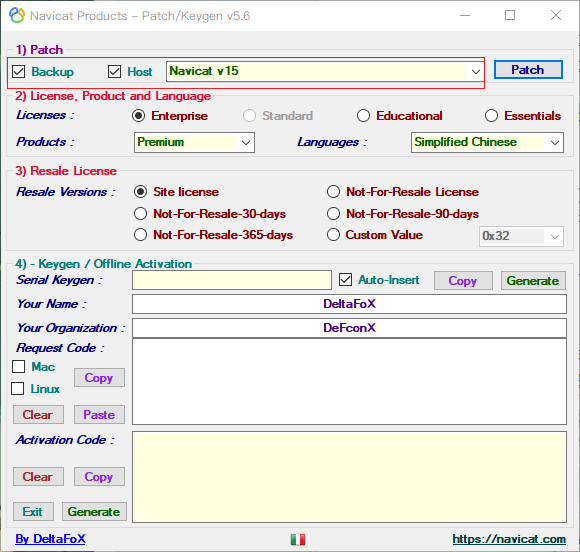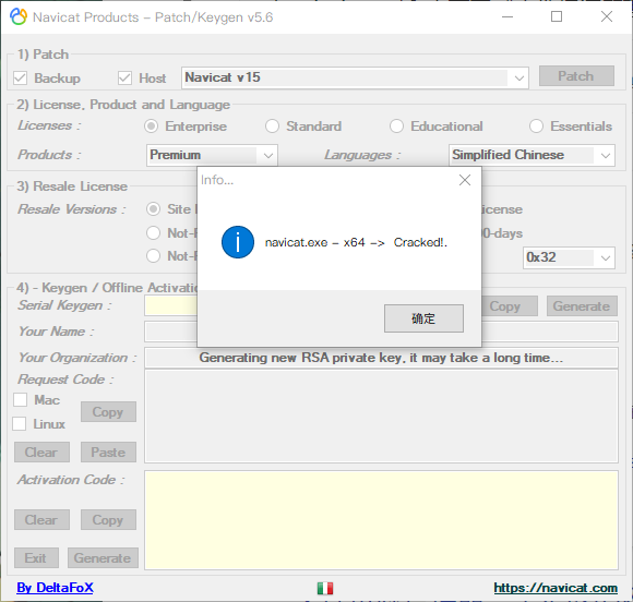 安装完成后,运行激活工具:Navicat Keygen Patch v5.6.0 DFoX.exe: