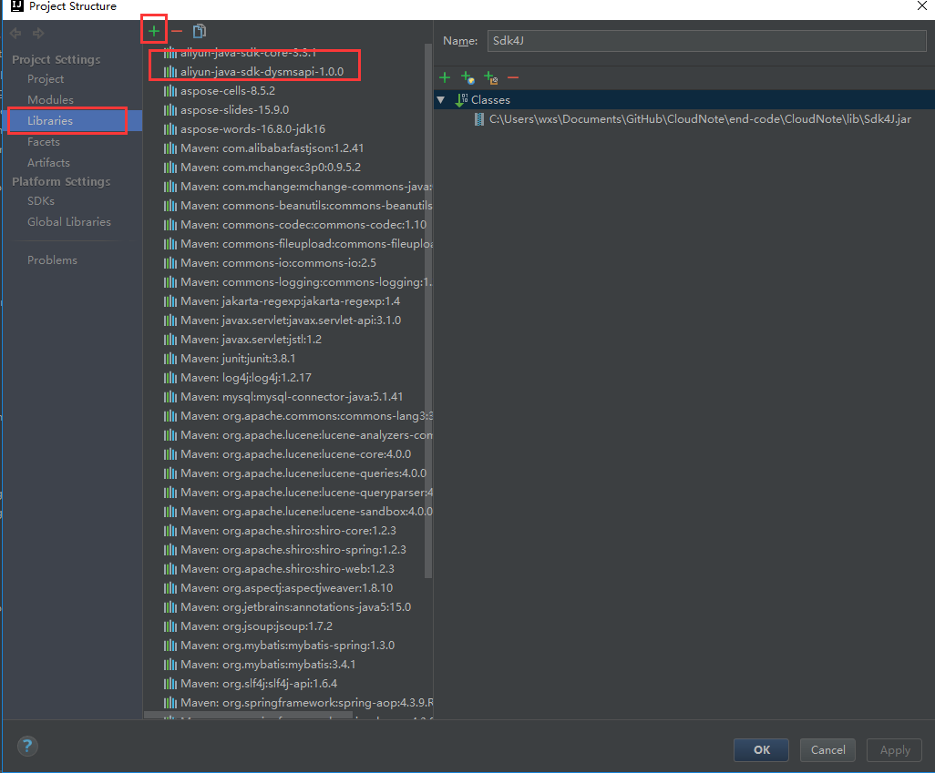 - 对于IDEA还有一下配置,选择File–>Project Structure–>Libraries,点击左侧的+号,选择Java,引入刚刚lib目录下的所有jar包。