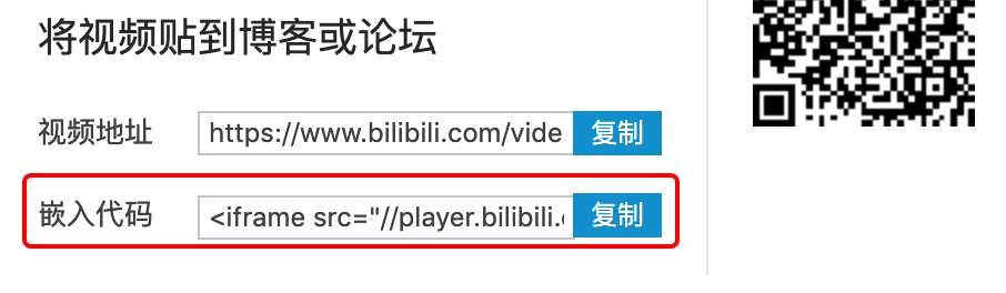Markdown 本身是不支持视频的,但是我们可以通过 HTML 的 Iframe 来实现,在大部分的视频网站中,通过点击视频下方的获取嵌入代码,并将其粘入 Markdown 中即可。